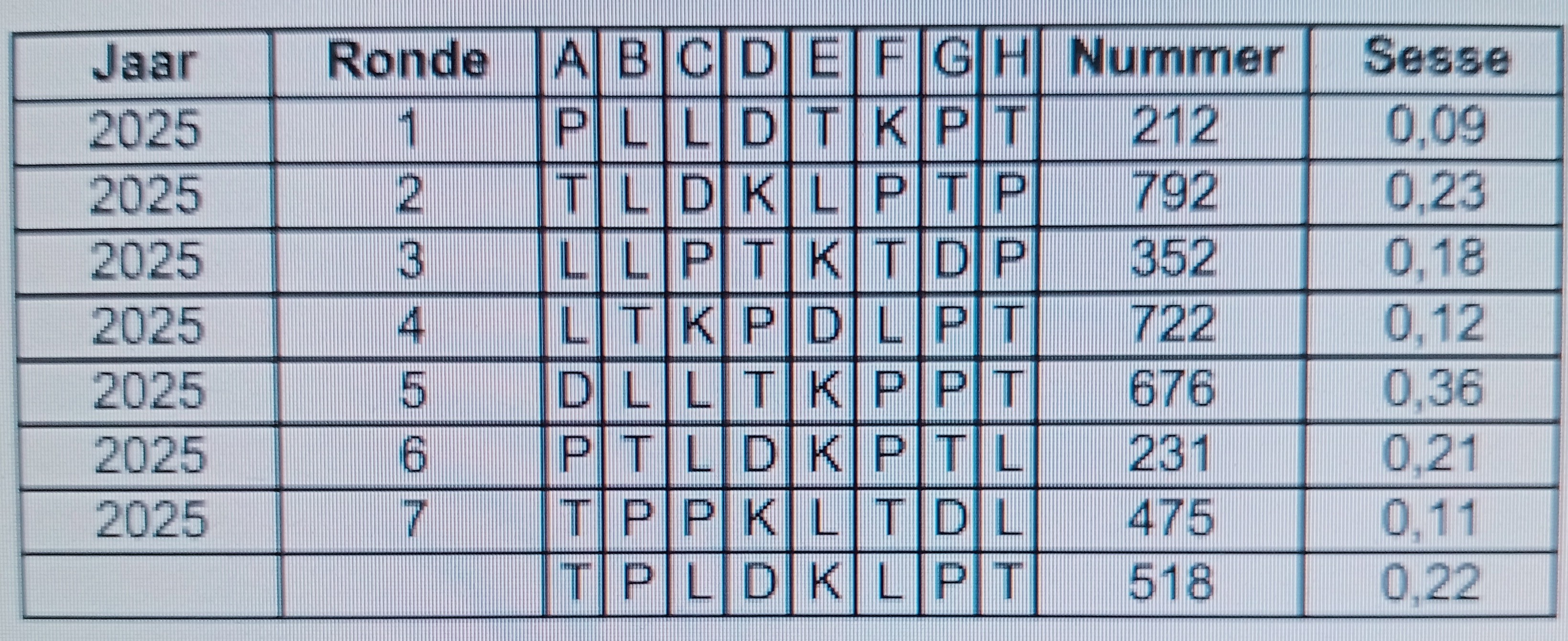 In onderstaande tabel staan de 7 verschillende gespeelde stellingen.